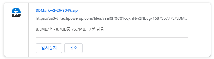 파일 크기는 약 8.7GB이고 평균속도 8.5 정도로 17분정도 소요 됩니다.